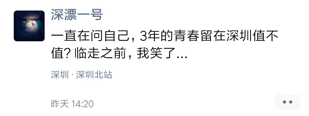 “深圳只有交不完的房租,吃不完的猪脚饭和木桶饭,我老了,深圳是你们年轻人的。”