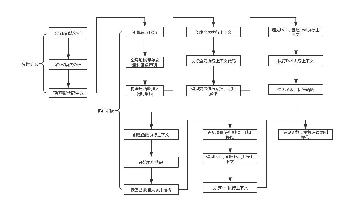 JavaScript引擎从头到尾负责整个JavaScript程序的编译和执行过程。