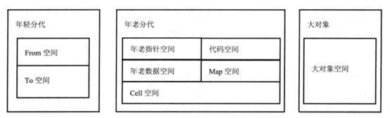 V8使用堆来管理JavaScript使用的数据、以及生成的代码、哈希表等。为了更方便地实现垃圾回收,同很多虚拟机一样,V8将堆分成三个部分。年轻代、年老代、和大对象。