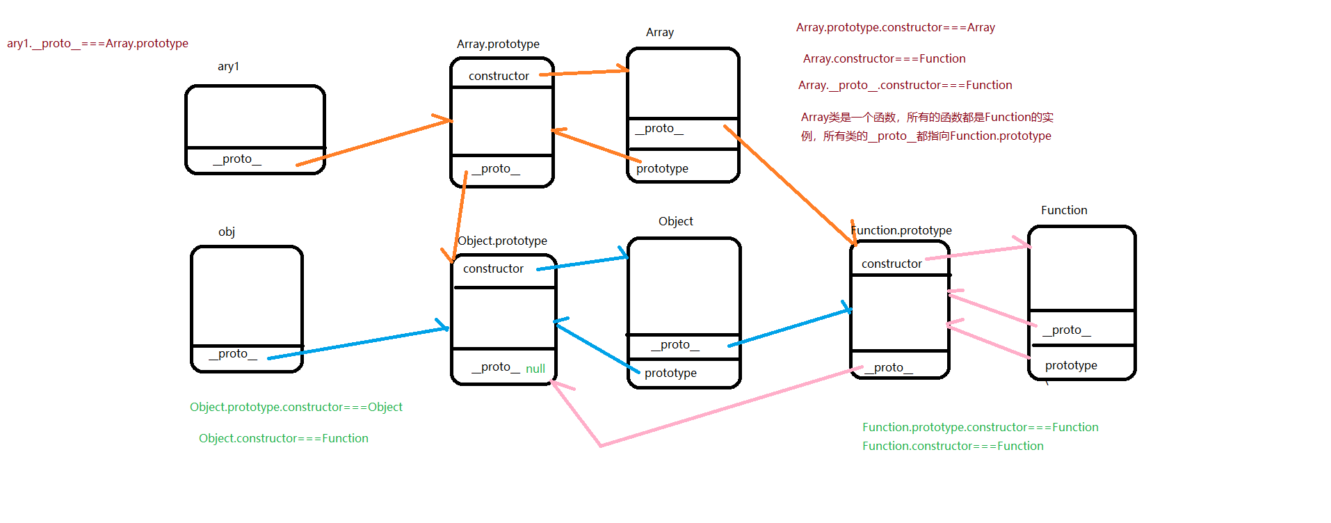 - 每一个实例(对象)都有一个__proto__属性,指向所属类的原型对象