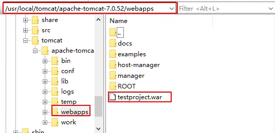 然后右键导出为war包,testproject.war,将该war包上传到两台服务器的tomcat的webapps中