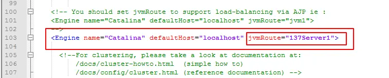 修改Engine标签中,添加jvmRoute,用于标识nginx访问的是哪个服务器tomcat,137服务器标识为137Server1,139服务器标识为139Server2