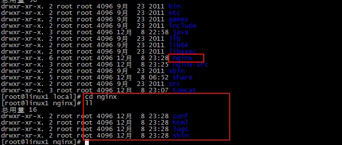 此时nginx安装完毕,安装目录是/usr/local/nginx,nginx默认占用80端口