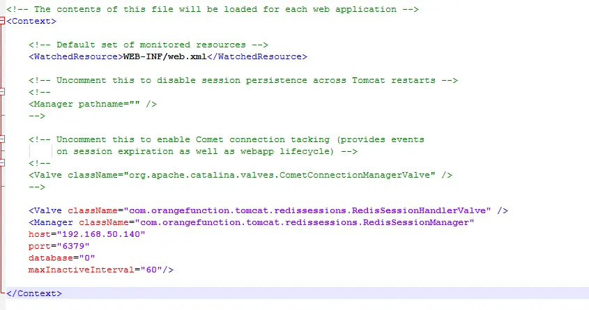 ?| 1 2 3 4 5 6 7 8 9 10 | <Valve className="com.orangefunction.tomcat.redissessions.RedisSessionHandlerValve" /> <Manager className="com.orangefunction.tomcat.redissessions.RedisSessionManager" //这里是redis服务器地址 host="192.168.50.140" //这里是redis端口,redis默认端口是6379 port="6379" //这里是redis数据库中的标识,标识第0个,默认使用0即可 database="0"