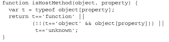 使用isHostMethod()方法,考虑到了浏览器的怪异行为,测试任何对象的某个特性是否存在比较可靠