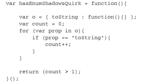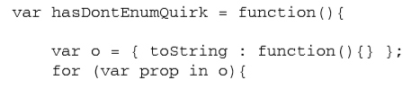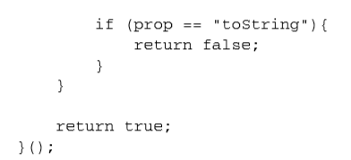 如果浏览器存在这个 bug,那么使用 for-in 循环枚举带有自定义的 toString()方法的对象,就 会返回两个 toString 的实例
