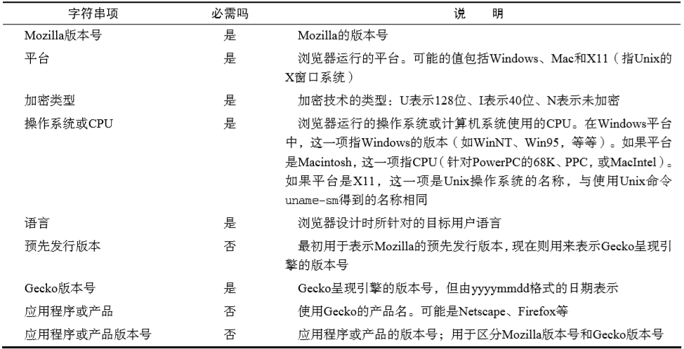 Netscape 在坚持将产品名和版本号作为用户代理字符串开头的基础上,又在后面依次添加了语言、平台、加密类型的信息