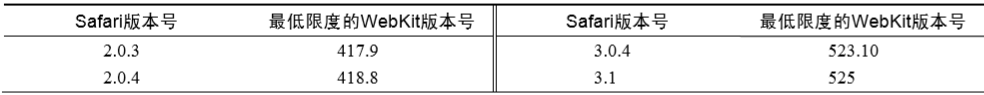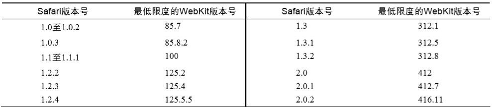 WebKit 版本与 Safari版本的详细对应情况(可能有偏差)