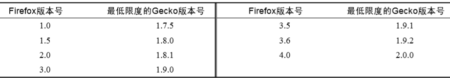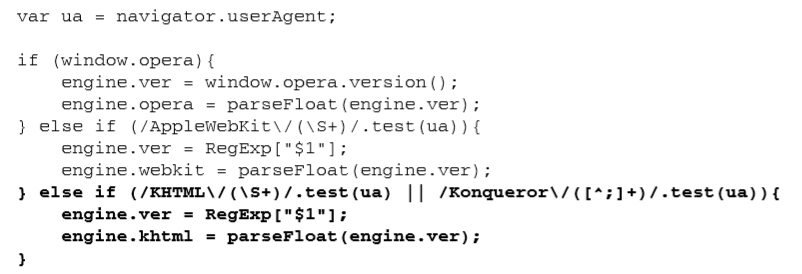 用户代理字符串中包含"Gecko",在排除 KHTML之前,无法准确检测基于 Gecko的浏览器