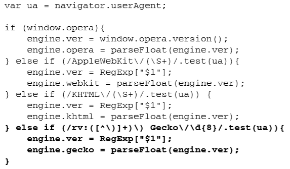 主要检测五大呈现引擎:IE、Gecko、WebKit、KHTML和 Opera