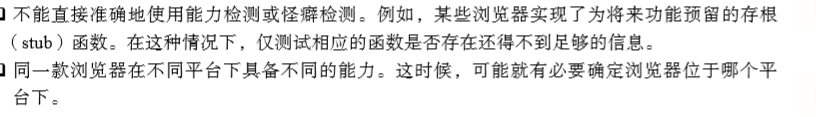 在实际开发中,应该将能力检测作为确定下一步解决方案的依据,而不是用它来判断用户使用的是什么浏览器