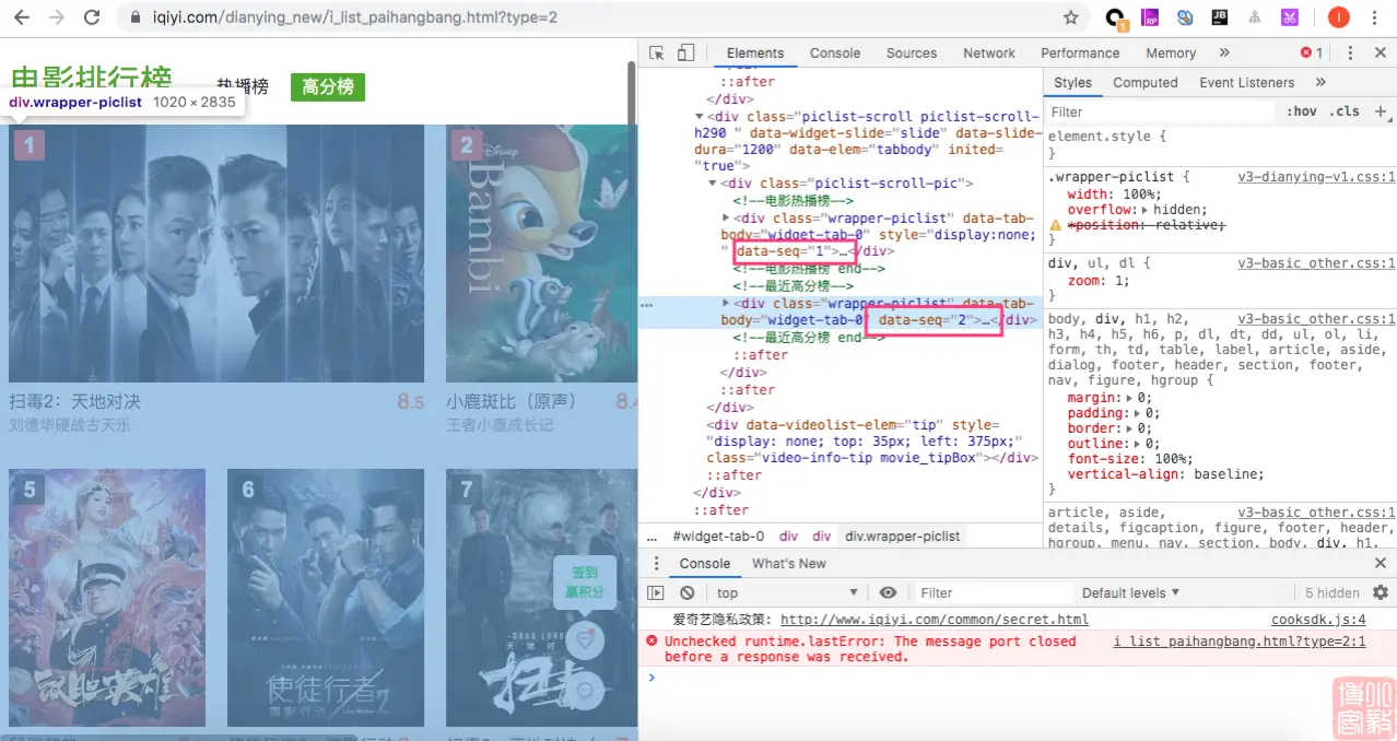 仔细观察后可以知道 data-seq 属性是用于区分排行榜类型的,值为1表示是热播榜,值为2表示是高分榜。