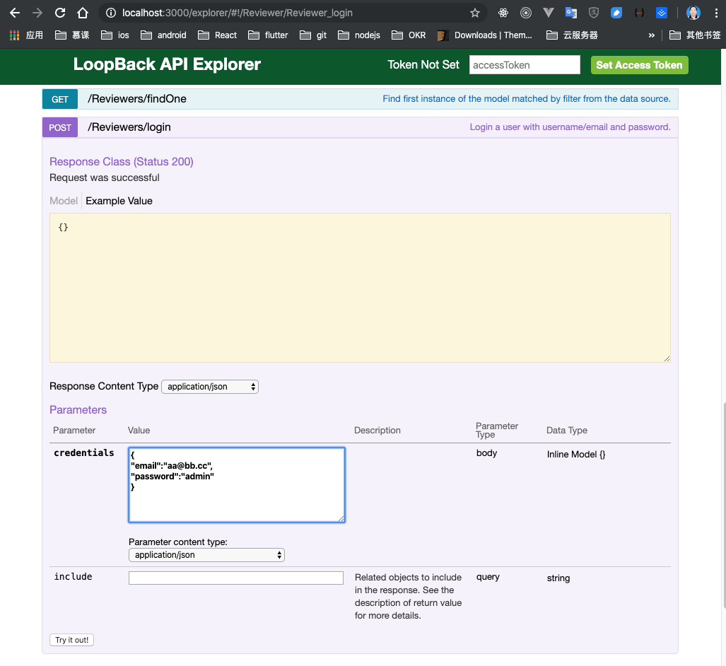get/Reviewers,出现操作提示界面后,点击Try it out!按钮,不再提示需要授权的信息,成功返回应用中已有的两个用户的信息。