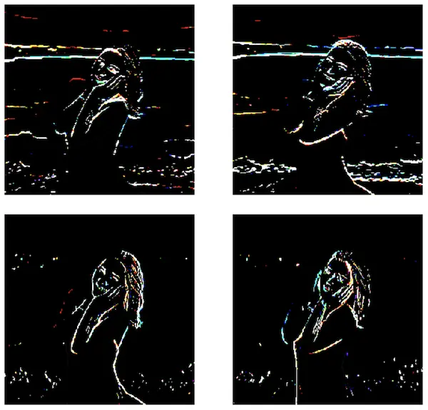 在卷积神经网络的应用中,对图像求卷积得到一副新的图像(如果步长大于1,新图像会缩小),通常用于提取图像的特征,每个过滤器也被称为一个特征映射。但是,图像卷积不只是用在深度神经网络提取特征,在深度学习应用之前,图像卷积已被大量应用在图像处理领域。如我们熟悉的 PhotoShop 等图像处理软件中的,模糊,锐化,浮雕,轮廓线,以及边沿检测,也是通过图像卷积实现的。不同的是,深度学习的卷积矩阵数值是由模型训练出来的,没有规律,而图像处理中,矩阵的数值是有规律的,并且形状通常为 3行3列。我们也称这个矩阵为 Image Kernel (事实上,在 Keras 中卷积层参数也使用 kernel 表示过滤器尺寸)。