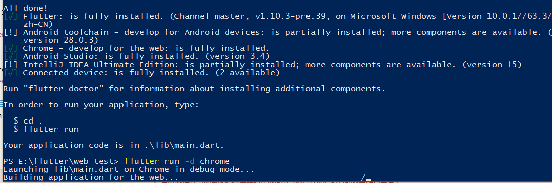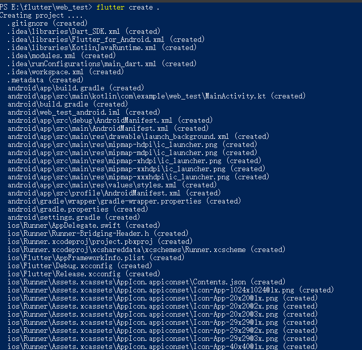 通过 flutter create . 命令来初始化一个 flutter web 项目。