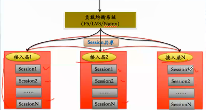 登录的基本信息,登录后的基本信息:用户凭证,AES、JWT进行加密等。 由于业务量大,需要部署多台服务器构成应用集群,这时候请求一般经过DNS,进入网关层,通过负载均衡算法,分配到不同的服务上,业务的上下文数据在不同的服务器上,是无法同步的。因此我们做无状态化设计,考虑的就是用户的session数据如何存放。
