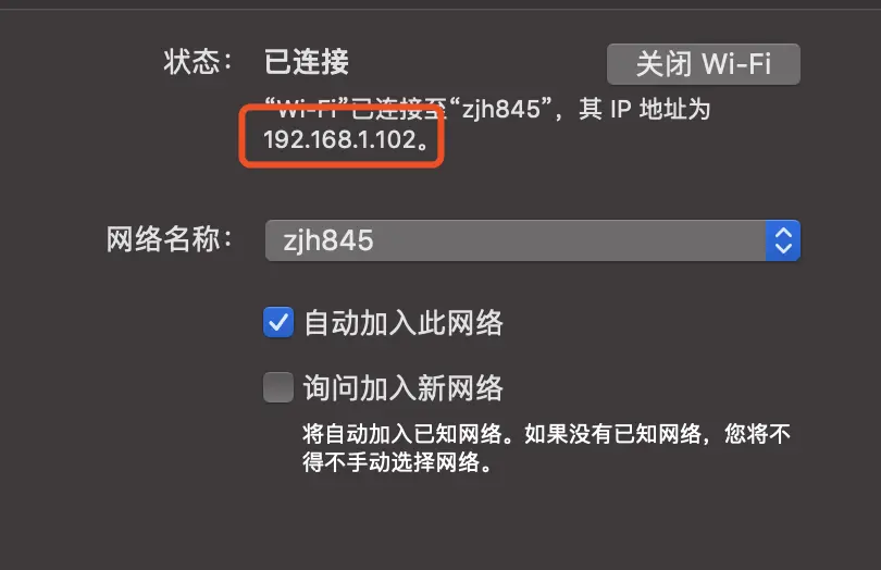 连接上同一个wifi,并将ip地址设置至手机