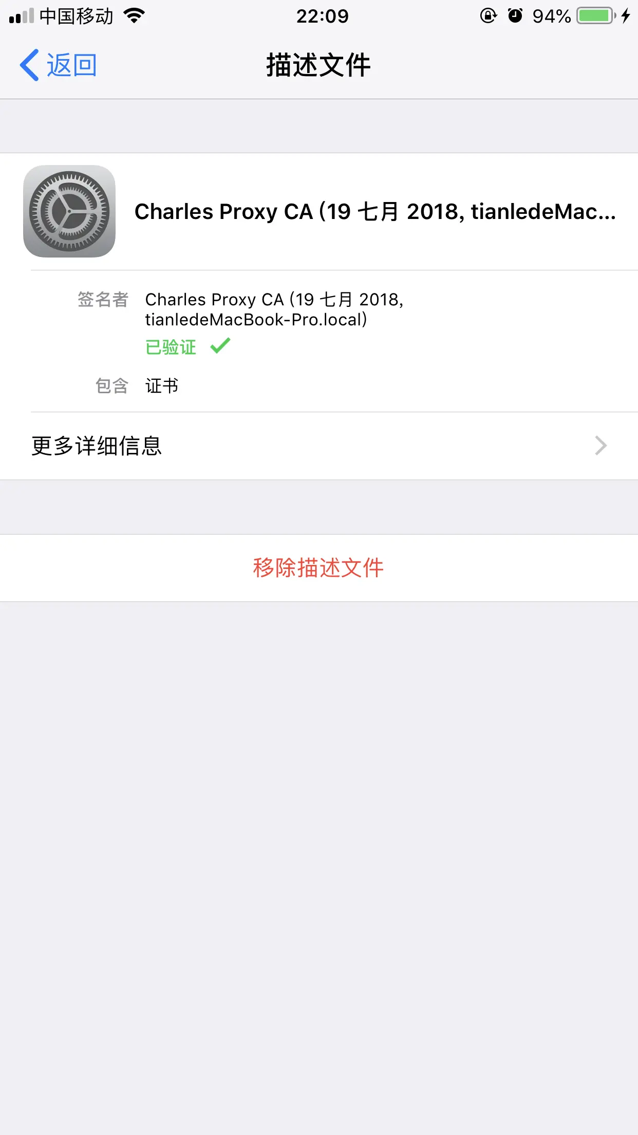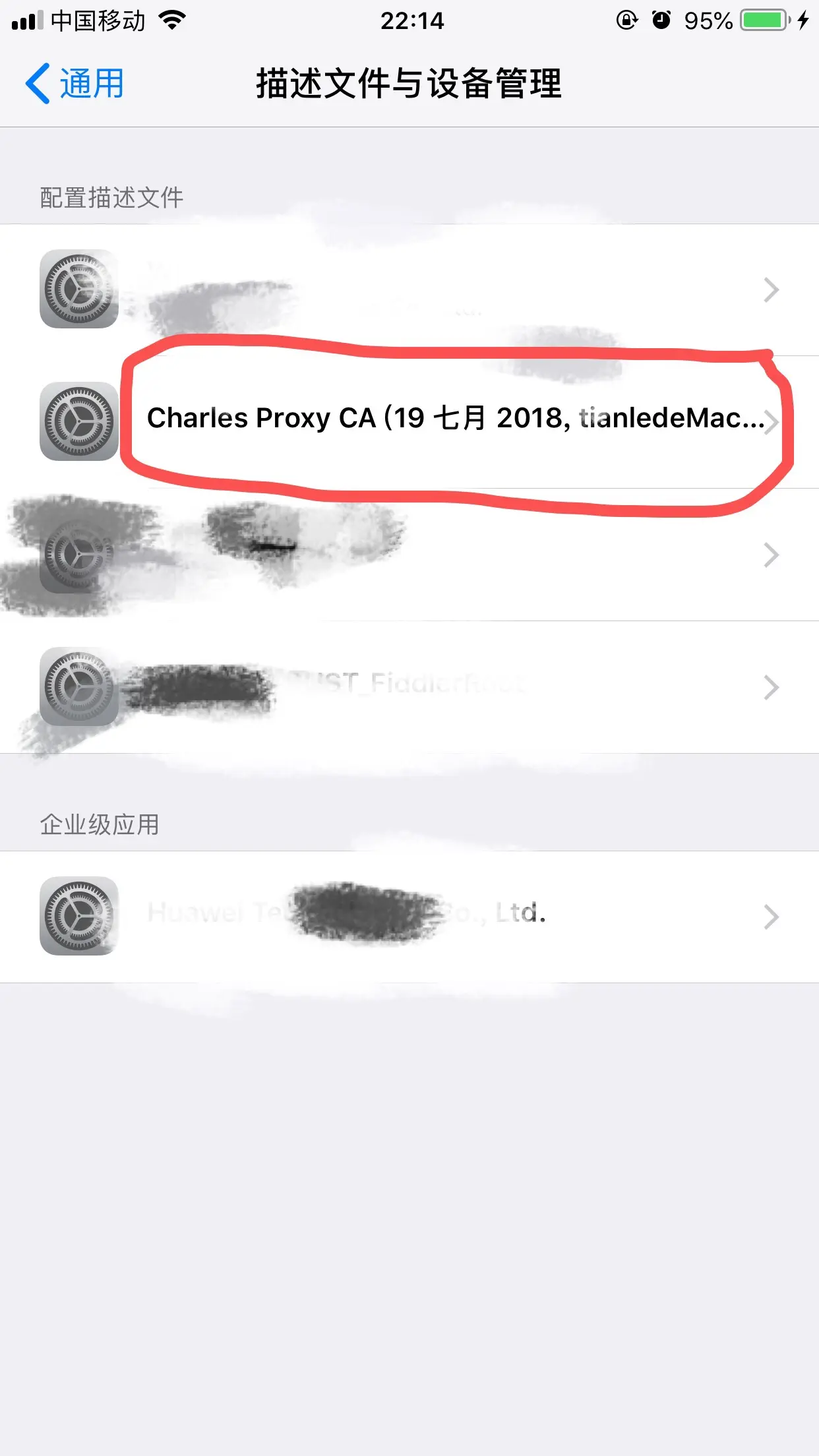 设置-> 通用 -> 描述文件与设备管理 -> 找到刚刚下载的证书并信任