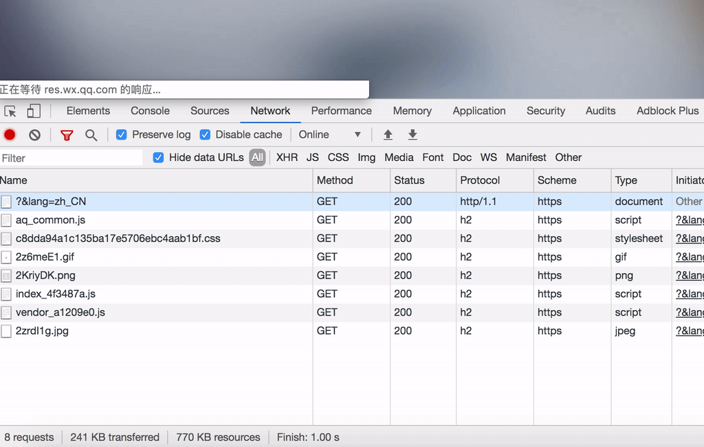 首先我们需要获取到二维码以用于扫描。通过观察web请求过程我们发现,https://login.weixin.qq.com/qrcode/【xxx】为其实际地址。而【xxx】的内容取决于对/jslogin的请求结果。