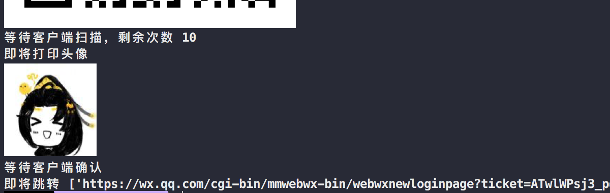 运行如上代码后。我们通过手机扫码机确认并成功获取了自己的头像及确认后需跳转的url。