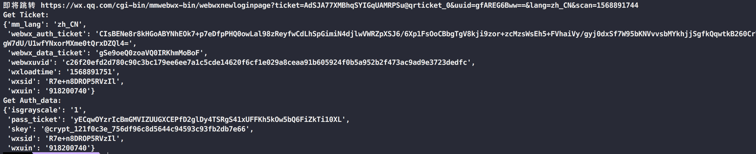 for key in ["skey", "wxsid", "wxuin", "pass_ticket", "isgrayscale"]