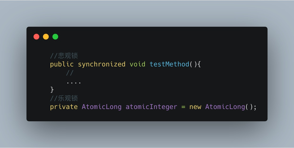 可以使用synchronized关键字来实现悲观锁,乐观锁可以使用并法包下提供的原子类。