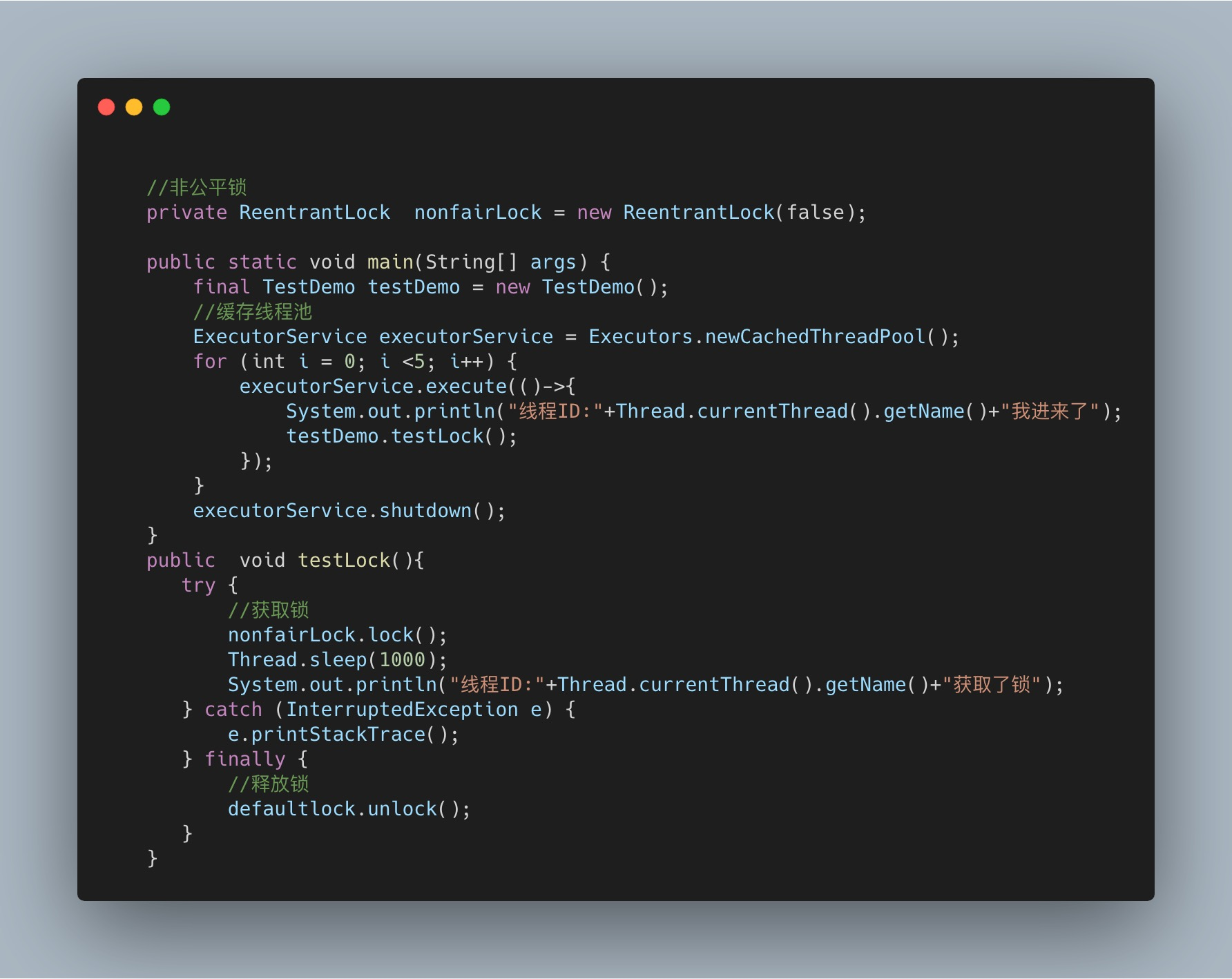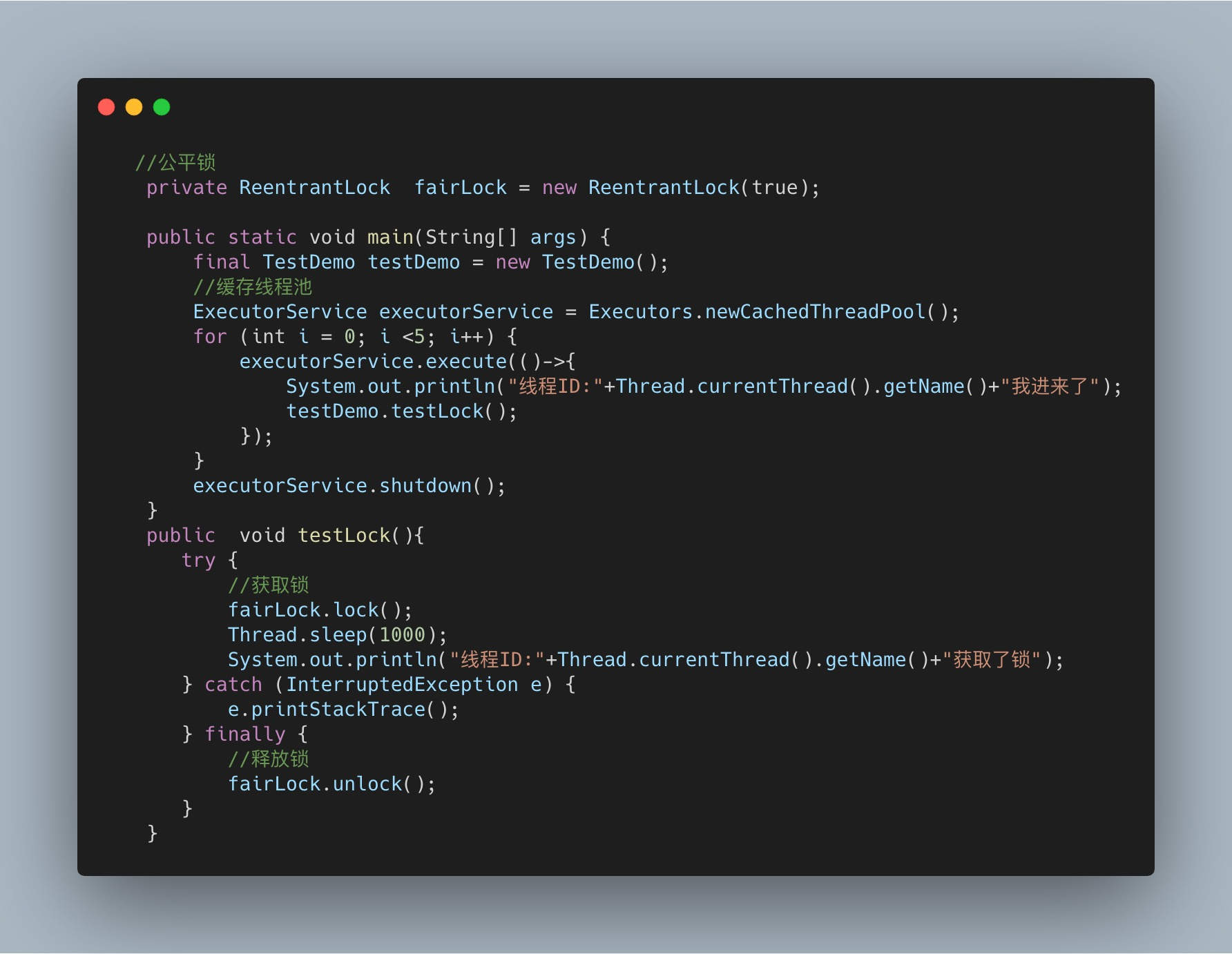 ReentrantLock默认就是非公平的锁,我们来看一下公平锁的例子: