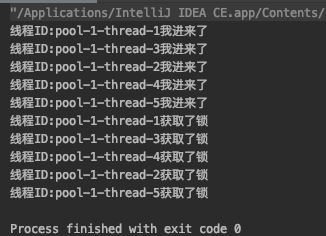 我们可以看到如果使用非公平锁的话最后输出的结果是完全没有顺序的,先到不一定先得。所以在使用公平锁的时候线程1获取到锁之后线程2在请求锁的话就会挂起等待线程1释放锁,然后线程2才能获取锁。如果再有一个线程3想要请求锁的话,这时候如果使用的是非公平锁,那么线程2和线程3中两个有一个会获取到锁,公平锁的情况下线程3只能先挂起,等待线程2获取锁资源释放后在获取。