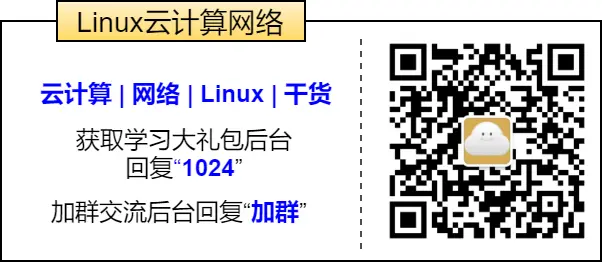 我的公众号 「Linux云计算网络」(id: cloud_dev) ,号内有 10T 书籍和视频资源,后台回复 「1024」 即可领取,分享的内容包括但不限于 Linux、网络、云计算虚拟化、容器Docker、OpenStack、Kubernetes、工具、SDN、OVS、DPDK、Go、Python、C/C++编程技术等内容,欢迎大家关注。