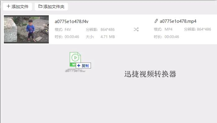 1、首先就是将需要转换视频格式的f4v视频文件添加到迅捷视频转换器中,这里可以点击软件中的添加文件按钮或者将所有的f4v视频都放在一个文件夹中,然后直接拖拽文件夹到软件中也可以成功添加。