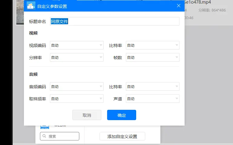 3、如果是觉得输出格式中提供的视频分辨率没有想要的参数,那么可以点击自定义设置,在里面自己定义其他类型的分辨率和各种参数信息。