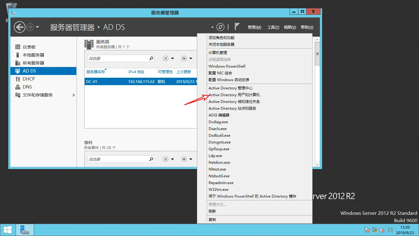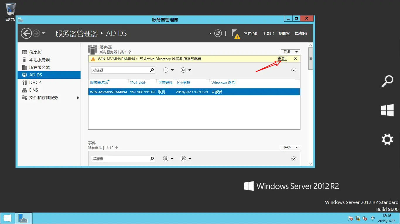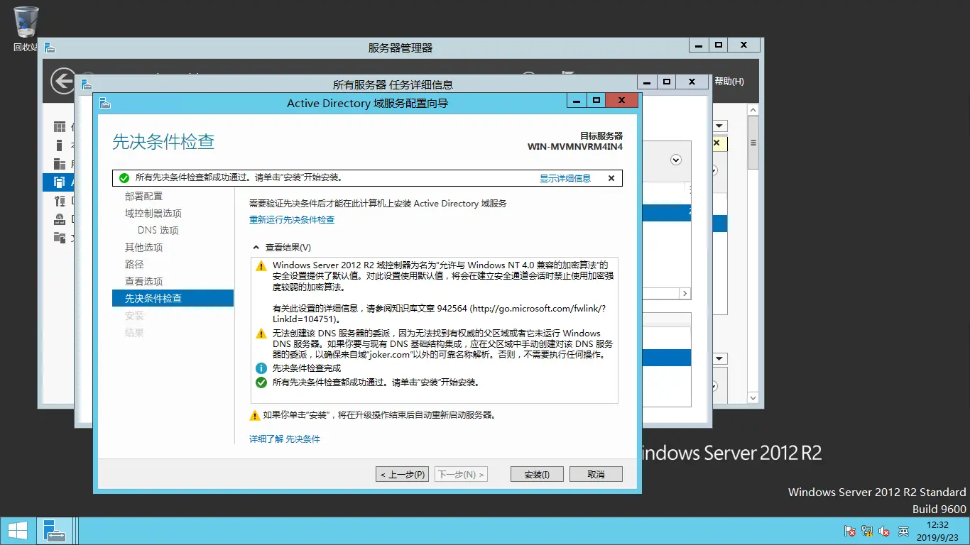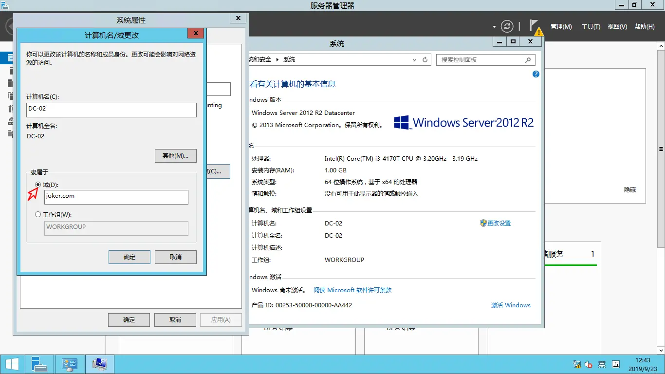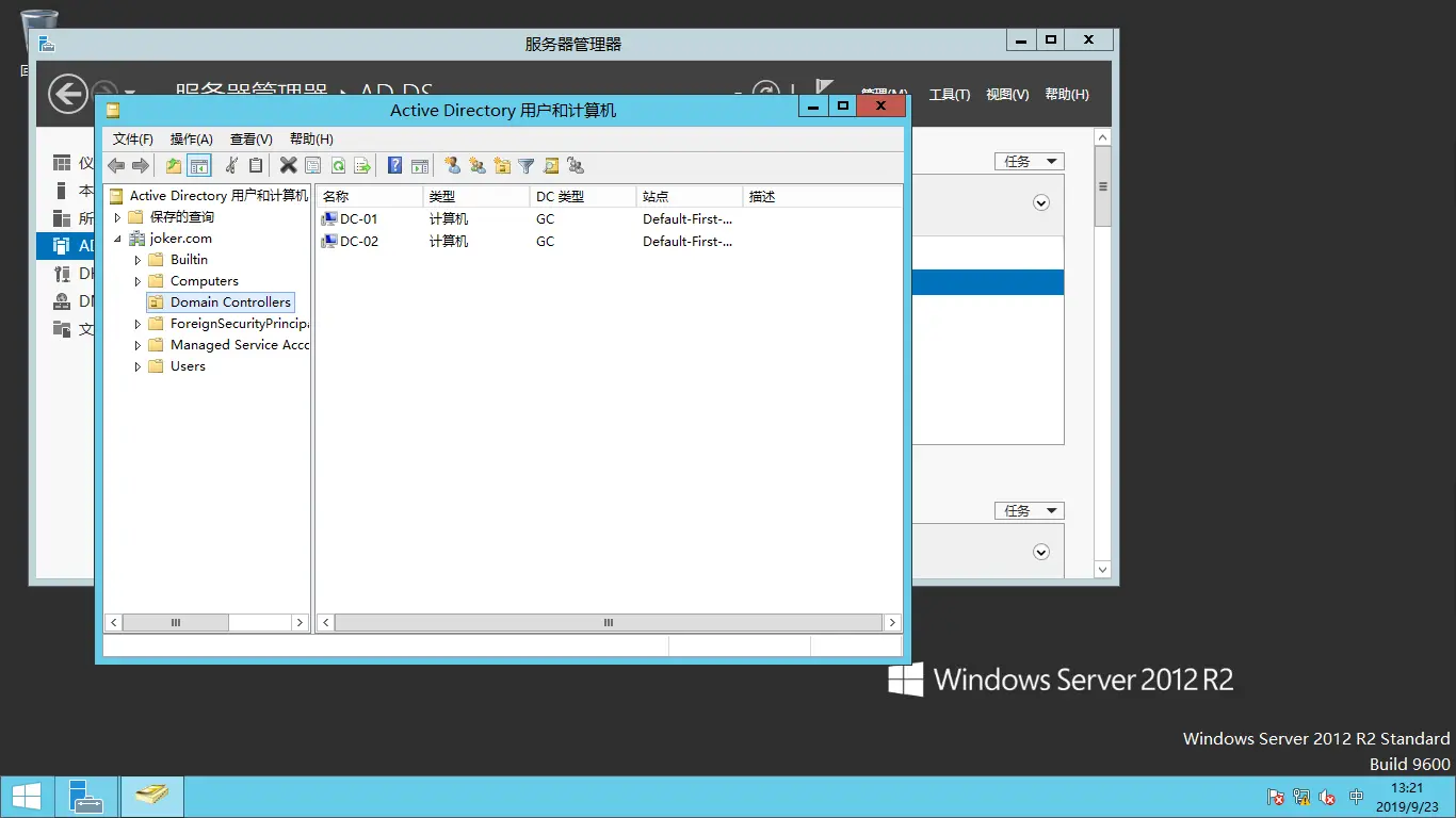 第二台计算机即备用的服务器加入到第一台计算机创建的域