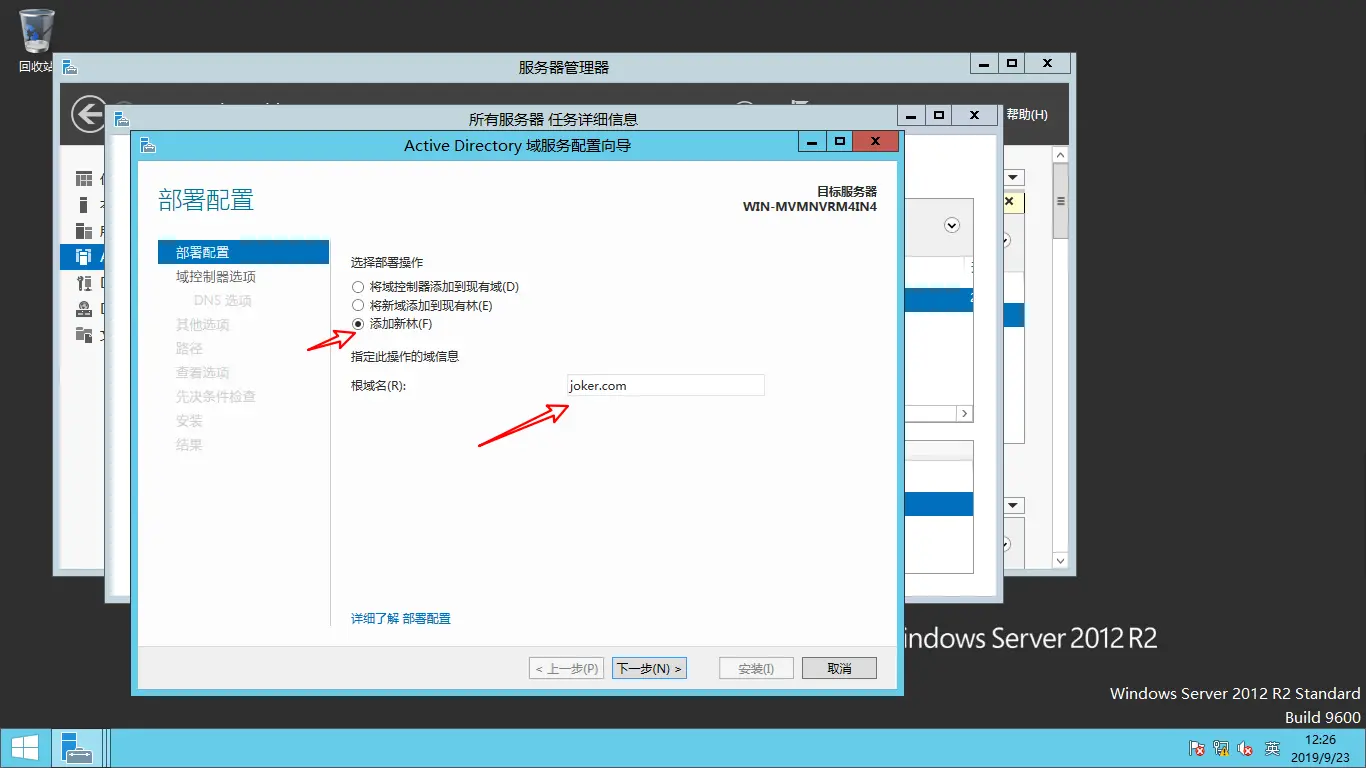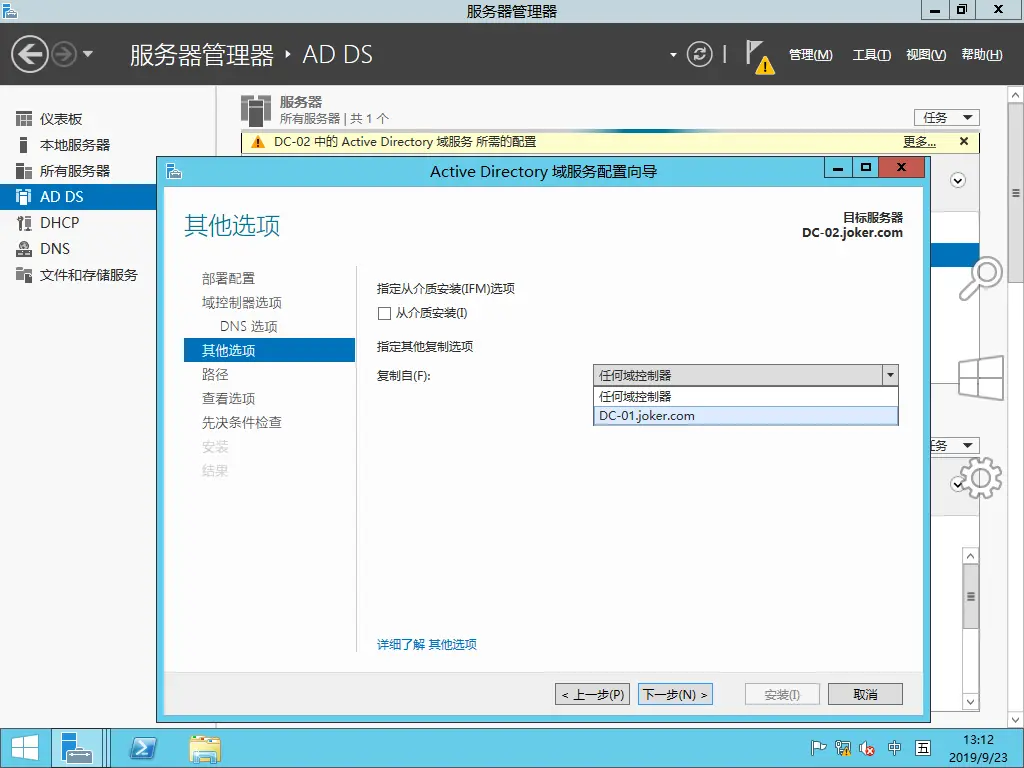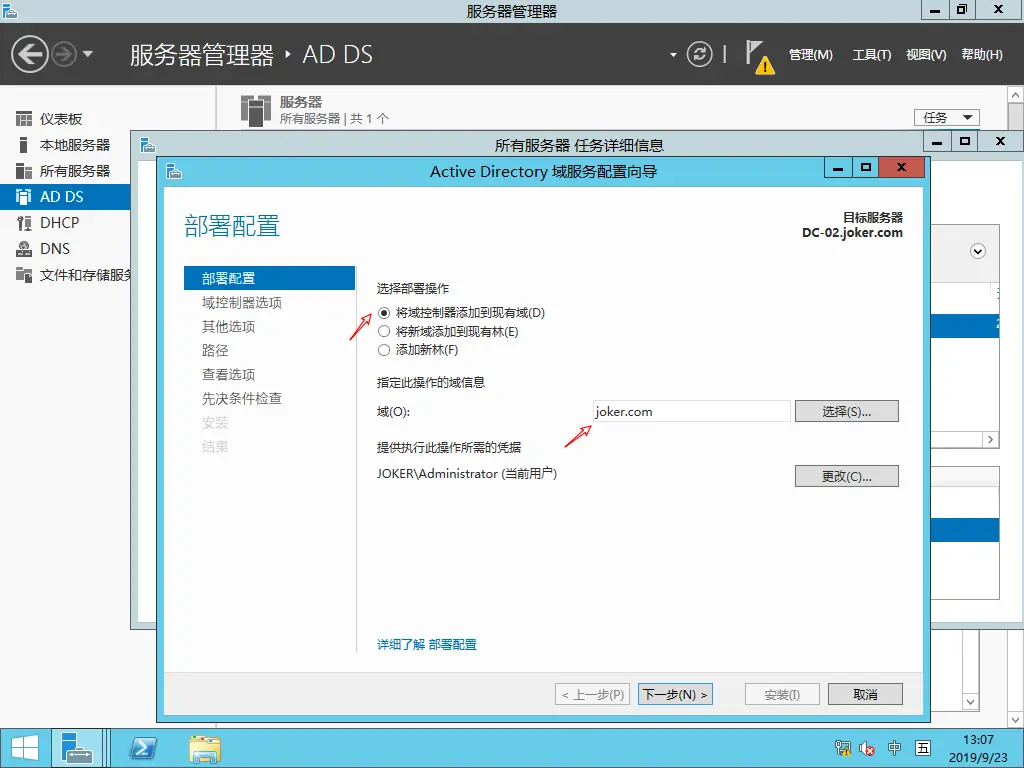 选择部署操作-将域控件器添加到现有域,这是默认配置,与第一台计算机区别在这里