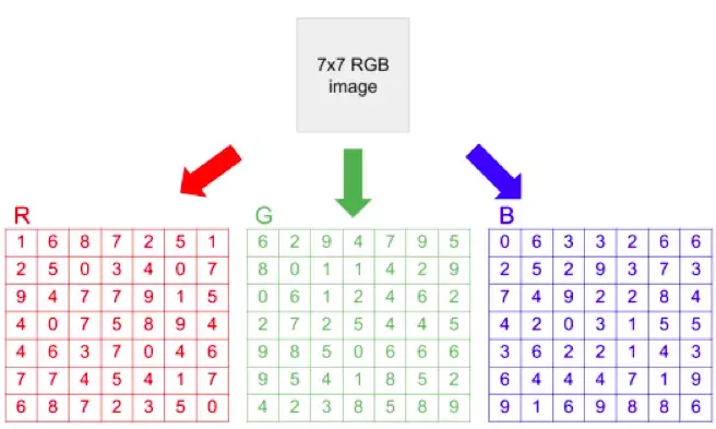 实际上,图像的每个像素都有3个RGB值。范围介于0到255之间,反映了红色、绿色和蓝色的强度。值的高低与强度大小成反比。比如,一个像素用[ 78, 136, 60]这三个值表示。黑色就是[0, 0, 0]。