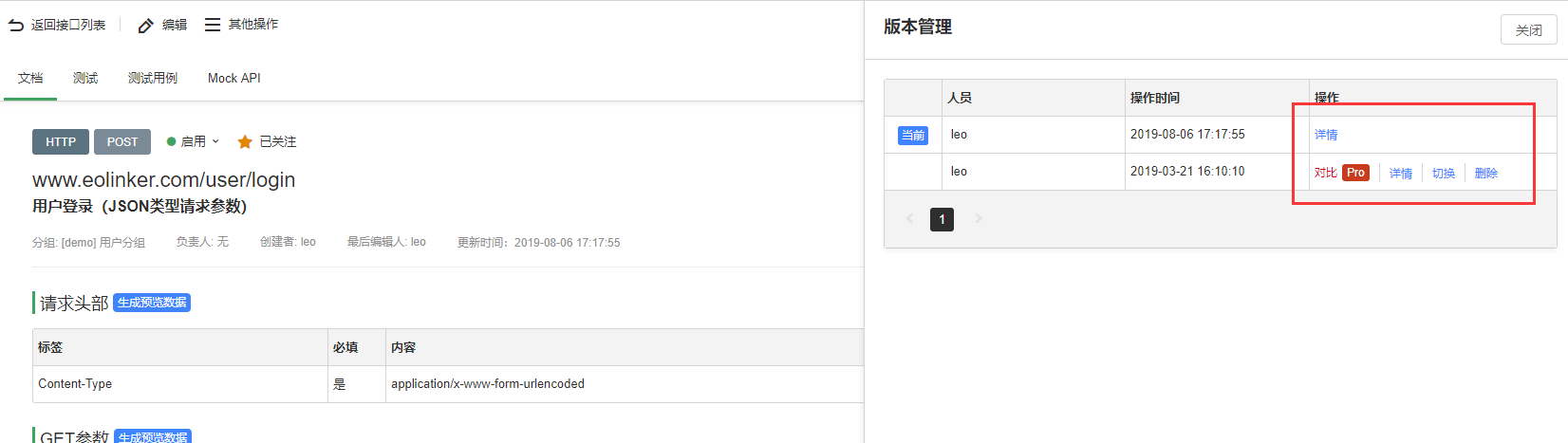 现在,如EOLINKER、RAML、Swagger,都提供了出色的编辑工具来支持他们的语言。EOLINKER采用的是版本对比和重点标注提示,可以清晰的切换、对比。RAML、Swagger采用的是版本切换,方便程度可能略逊一点。而且只有前者是支持中文的,后两种只支持英文语言。这些API编辑器都能轻松地实现API版本的控制,使得更容易在更短的时间内切换运行版本。点击查看。
