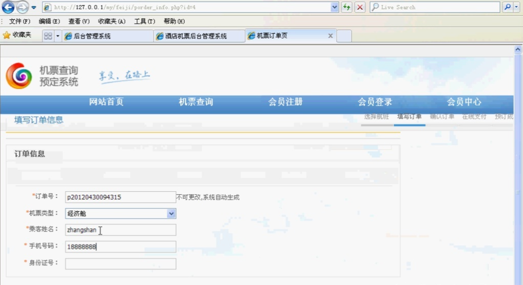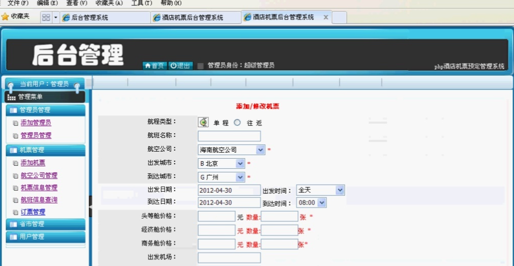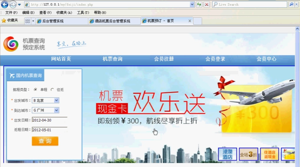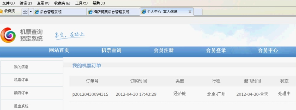 php003飞机票航空售票查询预定系统 盼江 2019-09-23 155 阅读1分钟 本项目包含机票的新增,修改, 删除,查询等机票信息管理,机票在线预定, 会员登录,会员注册, 会员中心信息管理等功能, 请查看 【项目详情】