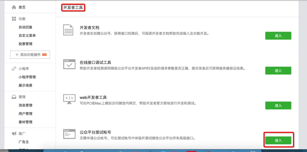 进入公众平台测试帐号