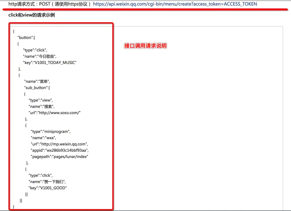 http请求方式:POST(请使用https协议) api.weixin.qq.com/cgi-bin/men…