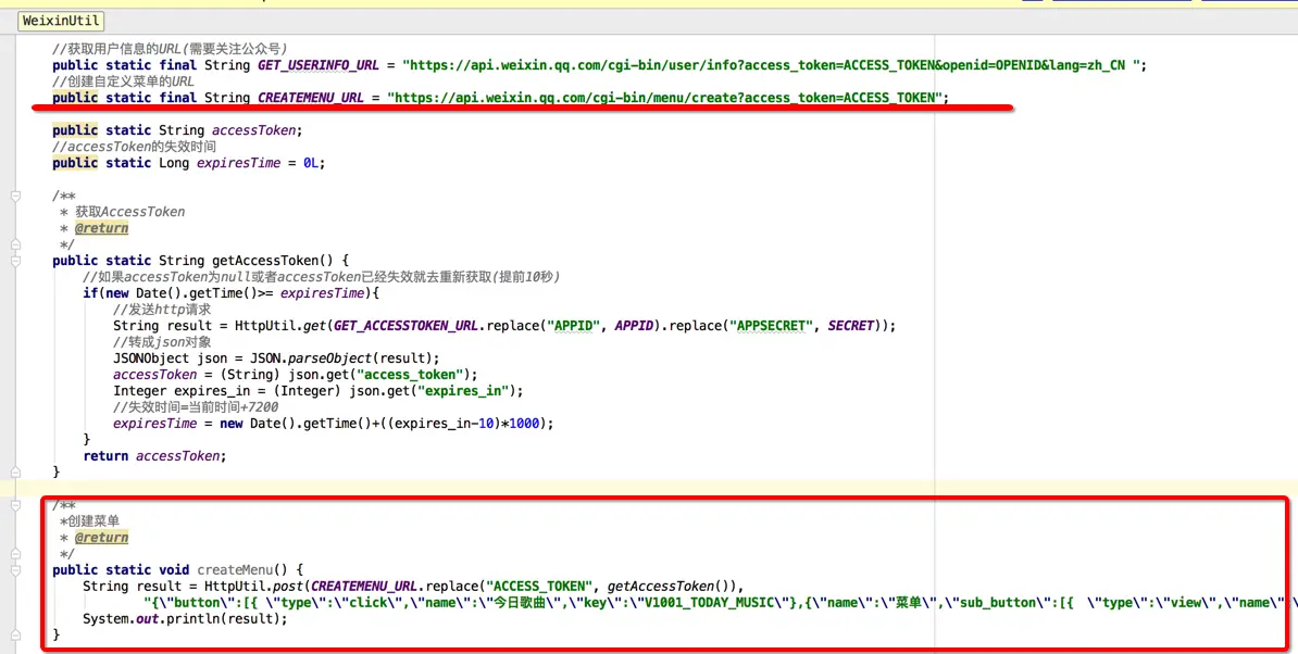 public static final String CREATEMENU_URL = "https://api.weixin.qq.com/cgi-bin/menu/create?access_token=ACCESS_TOKEN";