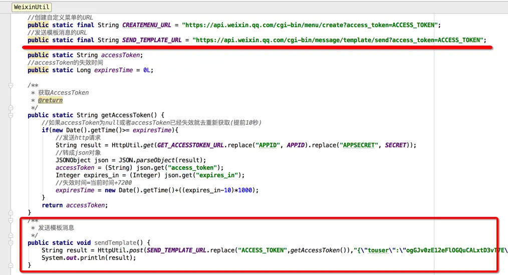 public static final String SEND_TEMPLATE_URL = "https://api.weixin.qq.com/cgi-bin/message/template/send?access_token=ACCESS_TOKEN";