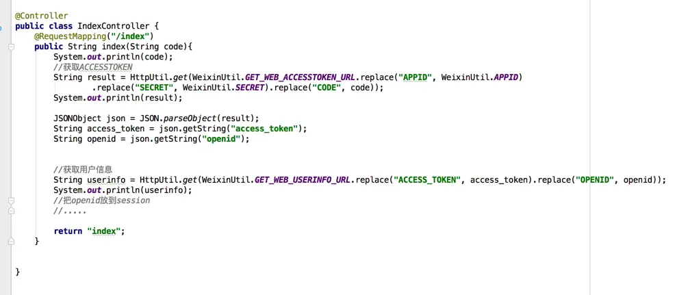 String result = HttpUtil.get(WeixinUtil.GET_WEB_ACCESSTOKEN_URL.replace("APPID", WeixinUtil.APPID)