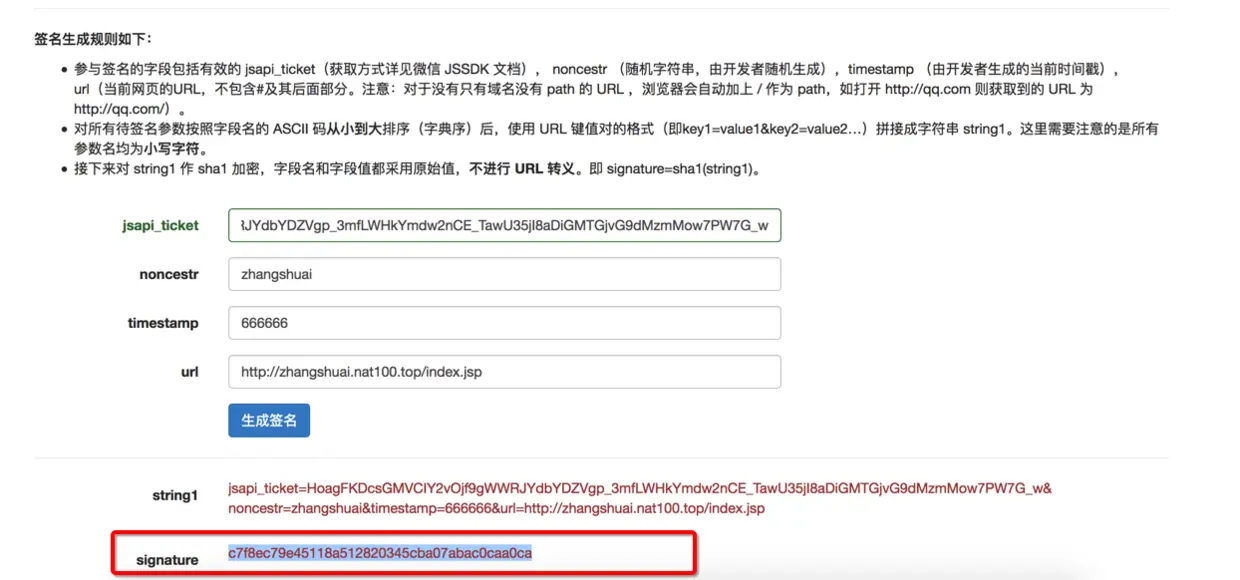signature: 'c7f8ec79e45118a512820345cba07abac0caa0ca',// 必填,签名,见附录1