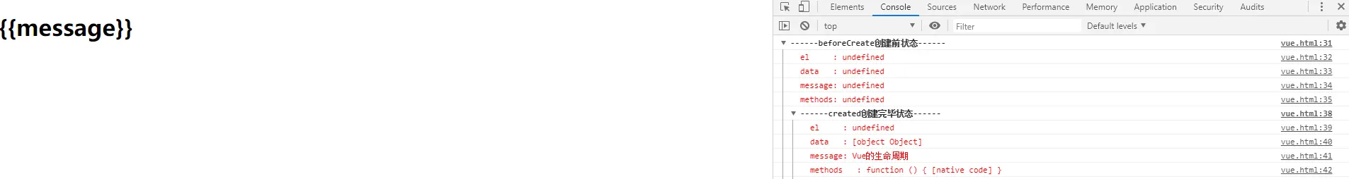 console.group('------beforeCreate创建前状态------');