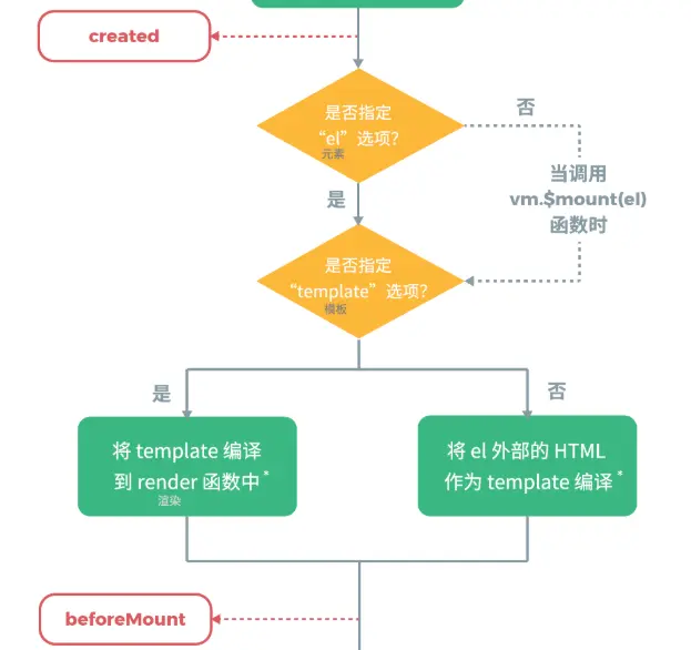 (2). 确定挂载模板;模板的产生主要有三种:render函数,template选项,外部HTML(即el所指元素)。且优先级为:render函数>template选项>外部HTML(即el所指元素)