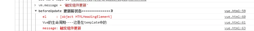 控制台输入 vm.message = '触发组件更新'