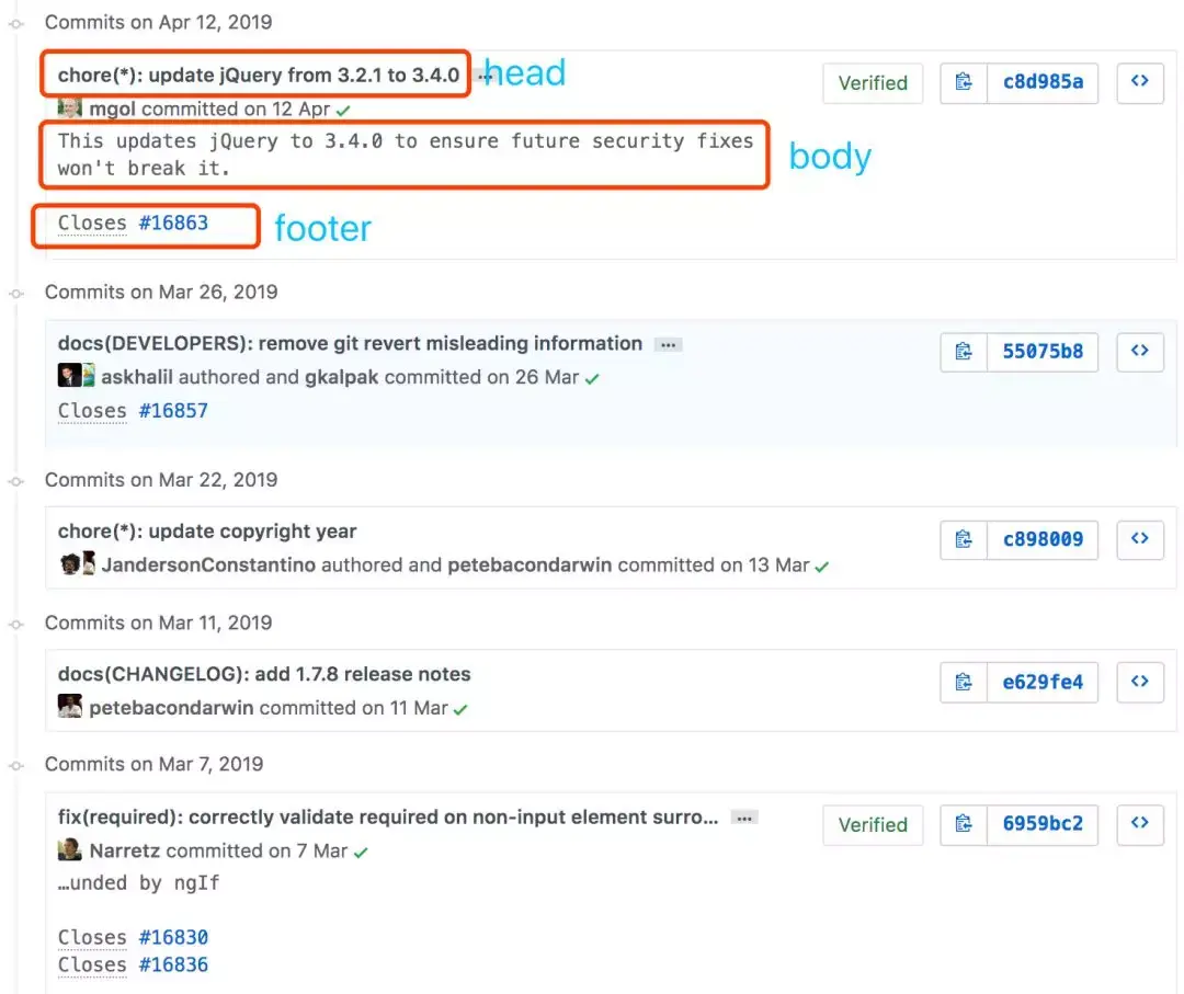 基于Angular的提交规范衍生出的规范,很大程度上以其为Augular的规范为依据 提交格式与Augular基本一致