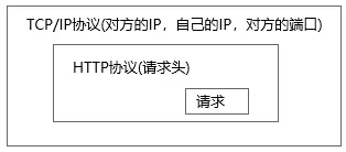 TCP/IP协议(对方的IP,自己的IP,对方的端口) HTTP协议(请求头) "a request"