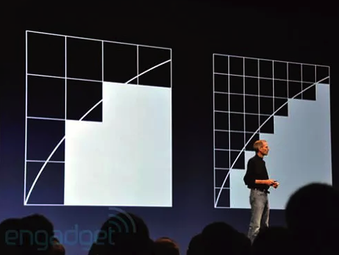 随着技术的快速发展,屏幕的变化也日新月异。很快,更高分辨率的屏幕诞生了,乔布斯在2010年6月8日发布了iPhone4,它的分辨率是640*960,正好是iPhone3的两倍。然而iPhone4和iPhone3的尺寸是一样的,都是3.5英寸,那么在物理尺寸不变的情况下,iPhone4是怎么做到把两倍的分辨率使用在这块3.5英寸的屏幕上的呢?