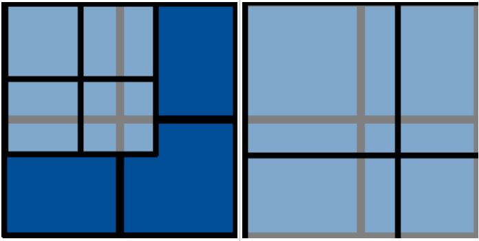 - 右图表示当用户进行放大操作时,一个CSS像素覆盖了多个设备独立像素。