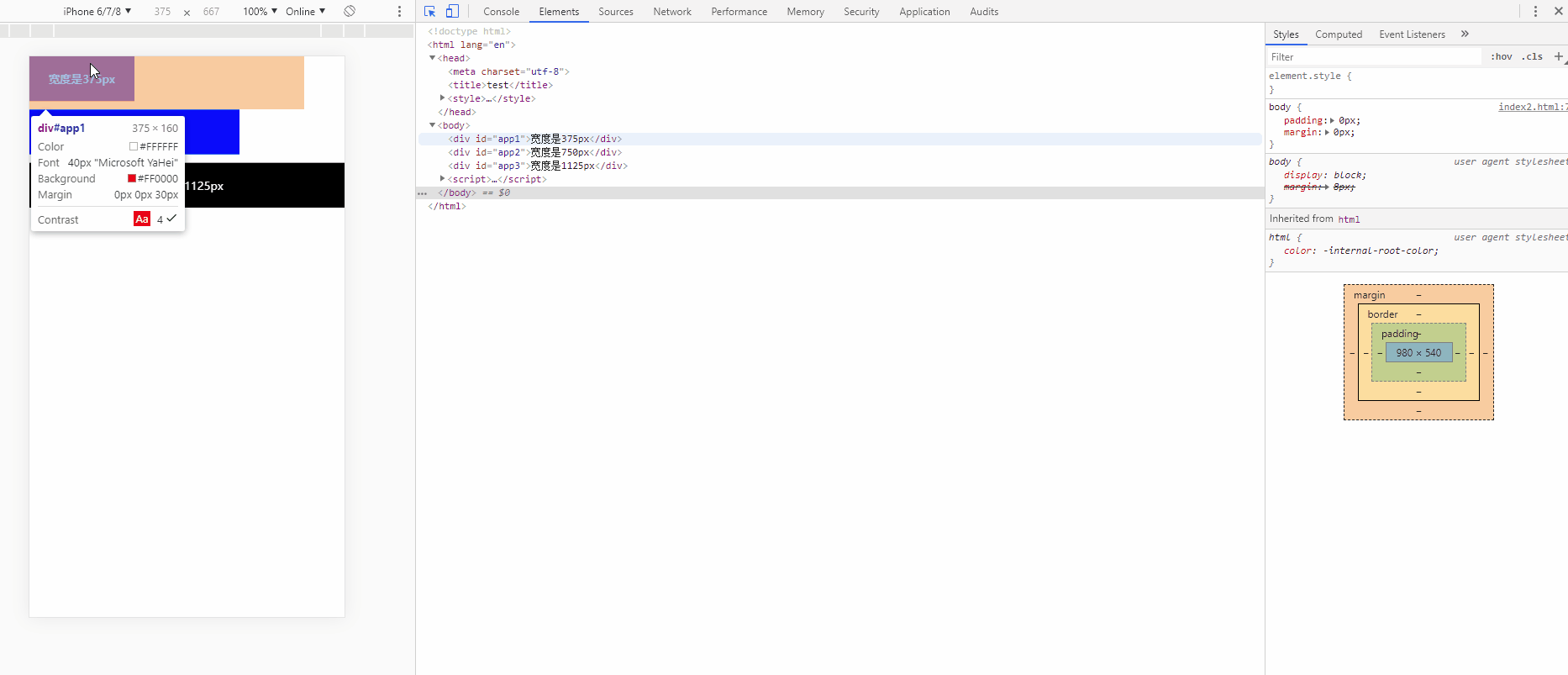 打开chrome的开发者工具,我们可以模拟各个手机型号的显示情况,每种型号上面会显示一个尺寸,比如